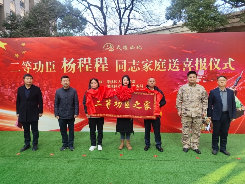 2025年12月25日上午,山北大地洋溢着一片崇军尚武、礼赞功臣的浓厚氛围。一场庄重而温暖的送喜报仪式在此举行,热烈祝贺荣立个人二等功的现役军人杨程程同志及其家庭。梁溪区区委常委、人武部部长邹伟,区退役军人事务局局长朱伟,山北街道党工委副书记、办事处主任吴准明等领导代表党委、政府及军队,将崇高的荣誉与真挚的关怀送至功臣家中。