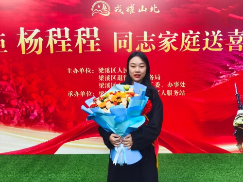 杨程程的父亲胡业勇手抚牌匾,感慨万分:“这份荣光,归功于党和部队的培养、首长和战友们的帮助,也离不开家乡各级领导的持续关怀。感谢区、街道和社区一直对我们家庭的关心照顾,解除了孩子的后顾之忧。我们一定会叮嘱他,珍惜荣誉、不忘初心,以此为新的起点,继续拼搏,为强军事业多作贡献!”
