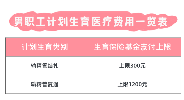 参加生育保险的职工实施输精管结扎以及复通手术等,所发生的符合生育保险规定的医疗费用,生育保险基金支付标准为: