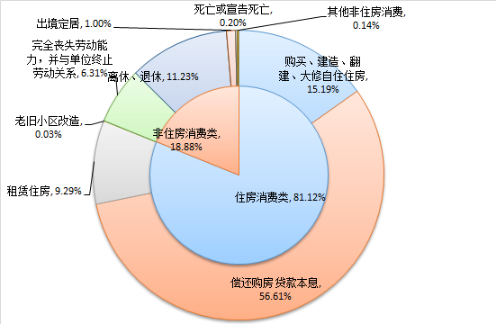 2025年四季度,住房消费类提取金额为53.91亿元,环比增长0.75%,占当季提取额的81.12%。其中还贷提取占比最高,提取金额37.62亿元,占当季提取额的56.61%。具体提取结构如下: