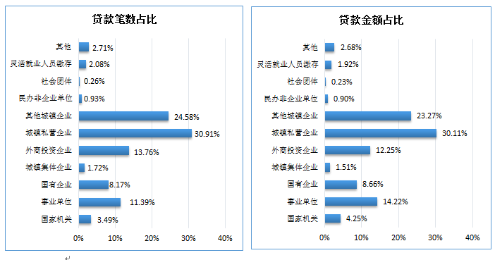 2025年四季度职工贷款笔数及贷款金额按单位性质分类占比图